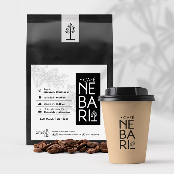 Café Nebari. Diseño de logotipo y etiqueta para bolsa de café.
