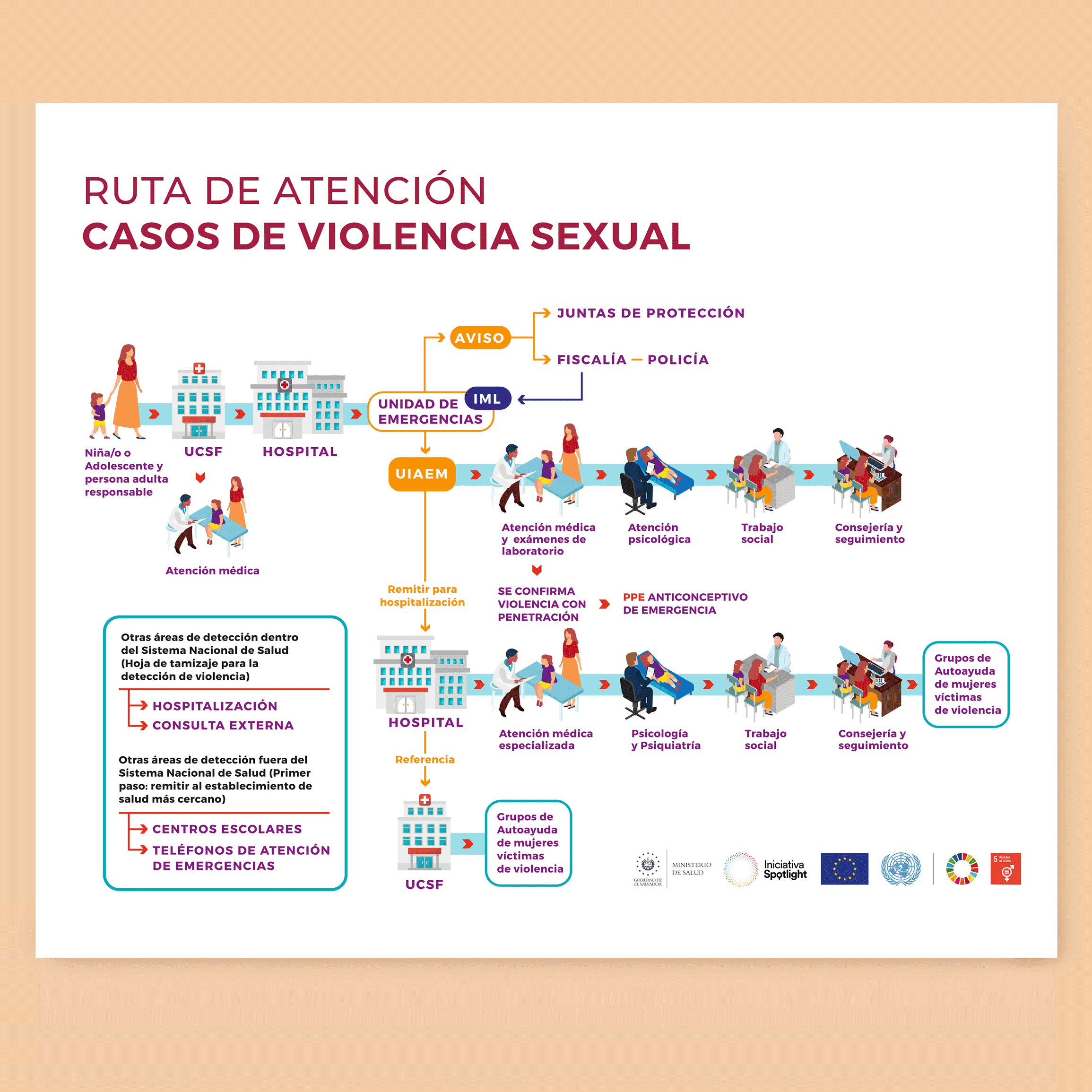 - Diseño de afiche: Ruta de atención en casos de violencia sexual dirigido a personal médico.
