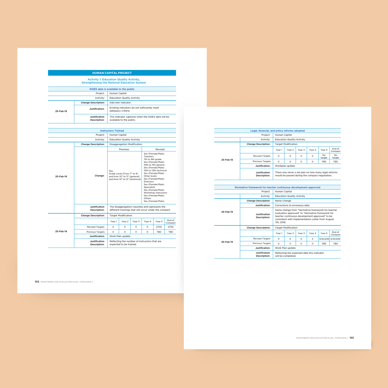 Fomilenio II. Diseño y diagramación: Plan de monitoreo y evaluación 2019, versión inglés y español.