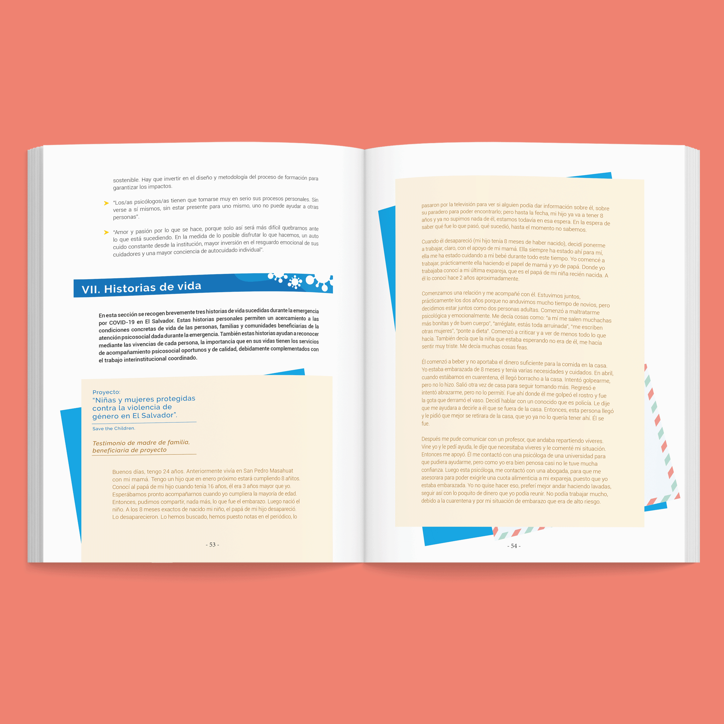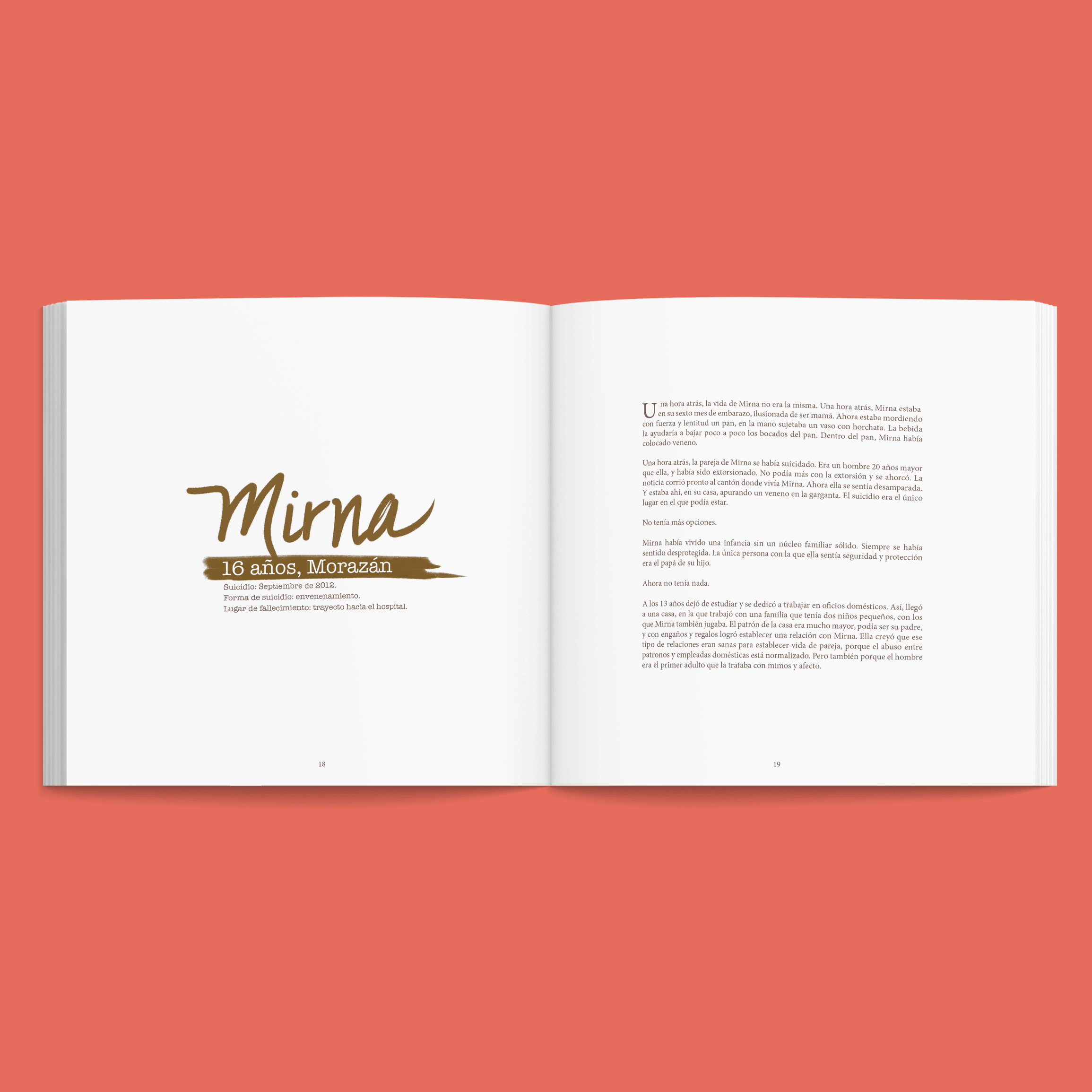 Fondo de Población de las Naciones Unidas (UNFPA). Diseño y diagramación de libro que narra diferentes historias de adolescentes embarazadas que han muerto por suicidio. Jóvenes que en la mayoría de los casos se vieron envueltas en situaciones de abuso, pobreza y maltrato.