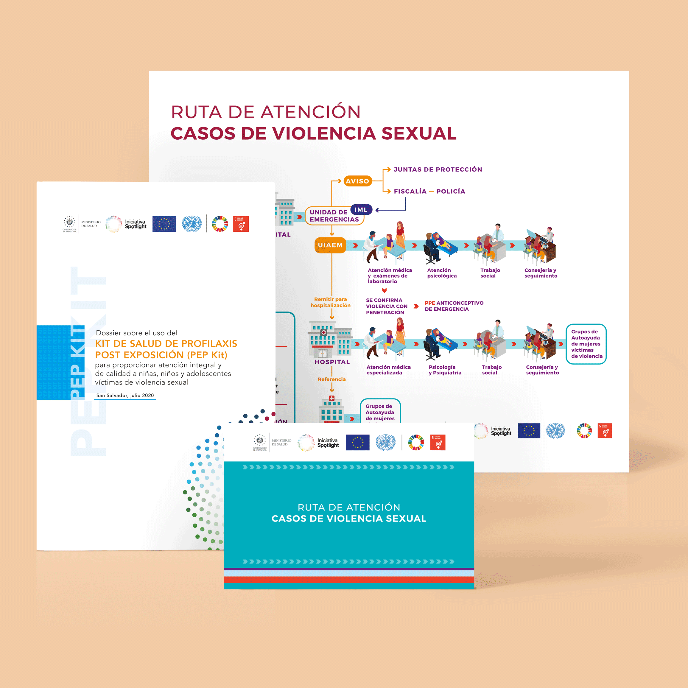 - Diseño y diagramación de dossier: Kit de salud de profilaxis post exposición (Pep Kit) para proporcionar atención integral y de calidad a niñas, niños y adolescentes víctimas de violencia sexual.