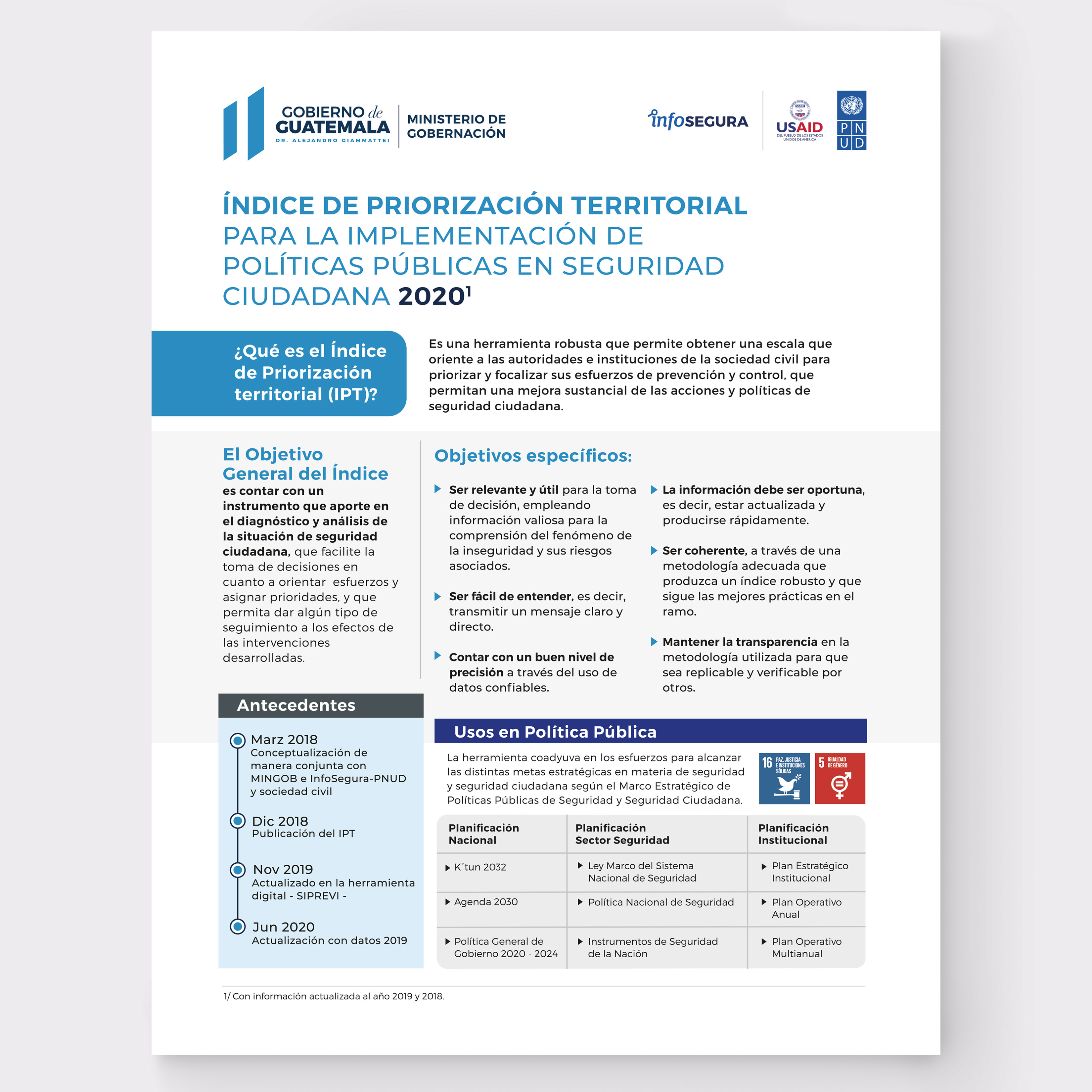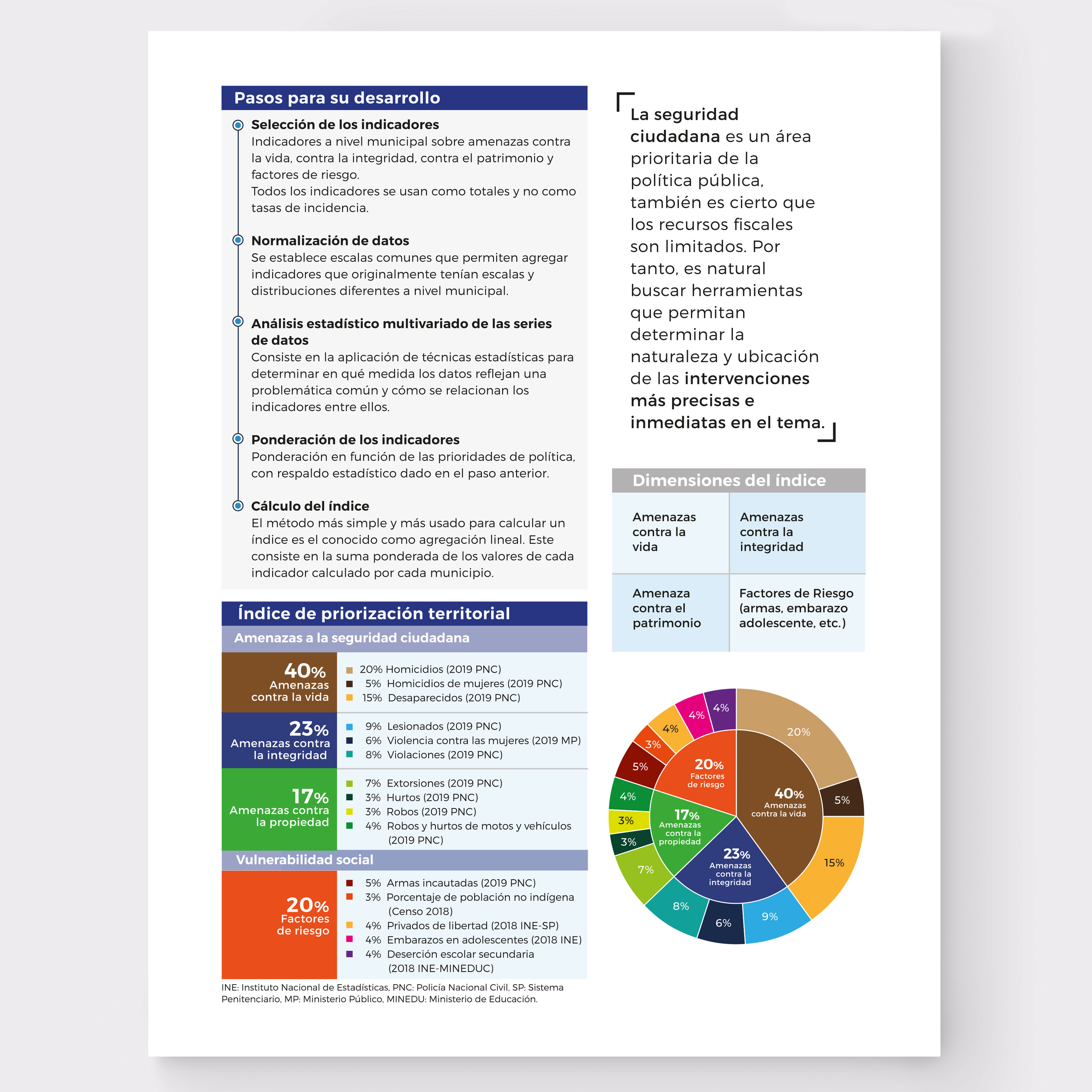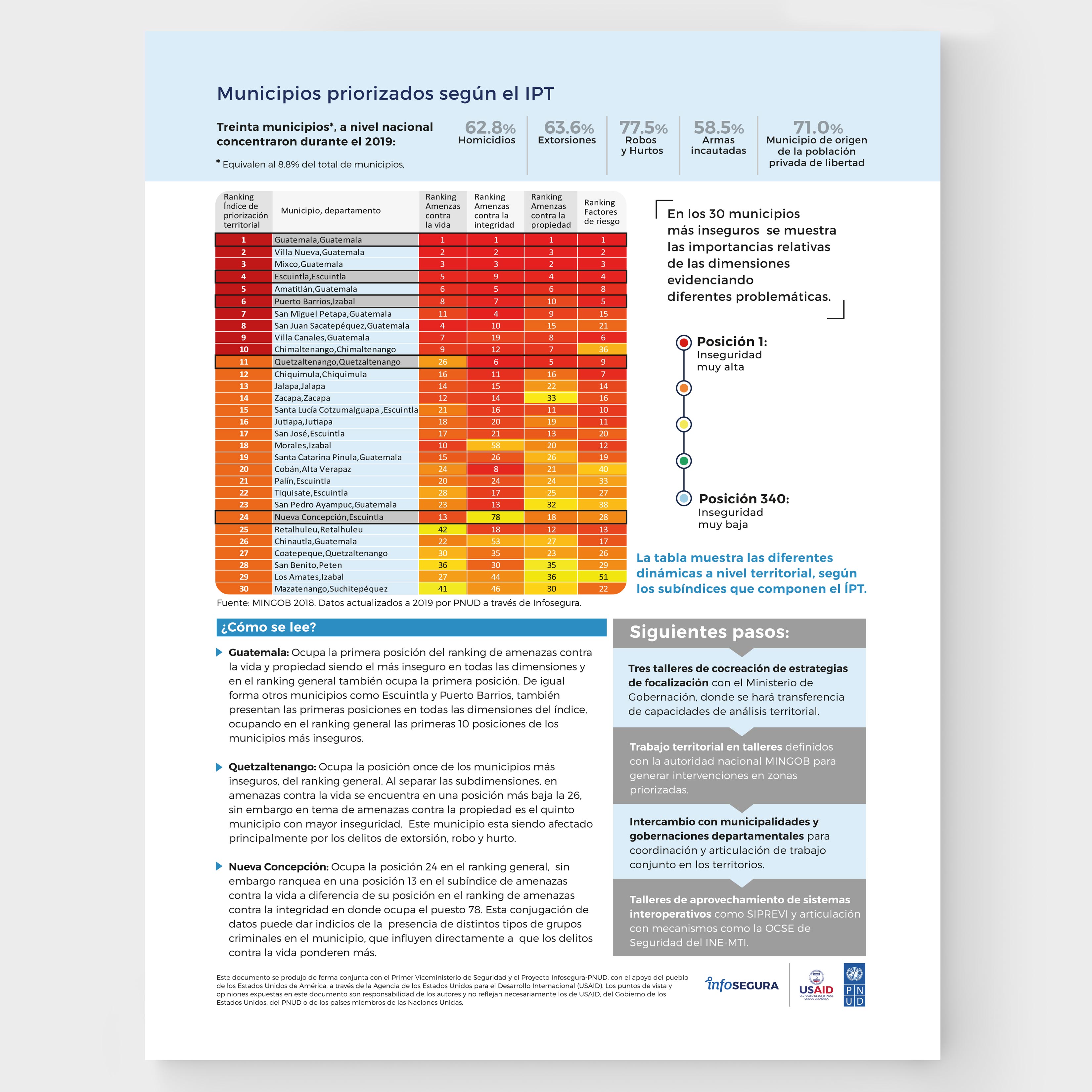 Infosegura/PNUD/USAID. Diseño de infográfico con representación de datos estadísticos: Índice de priorización territorial para la implementación de políticas públicas en seguridad ciudadana.